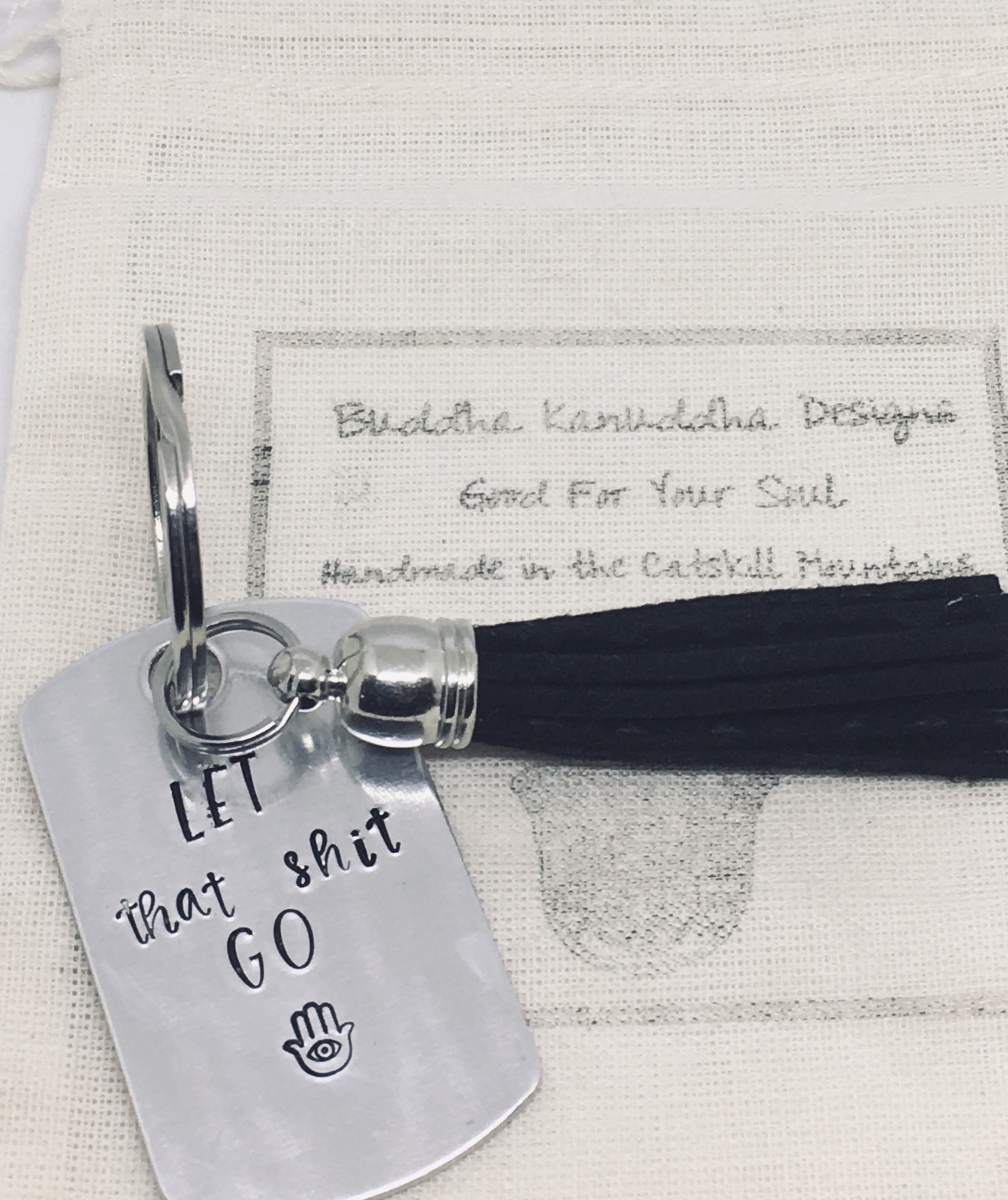 Handmade and hand stamped with love by me. No two are alike which adds to the artisan effect of the piece. Color of tassel may vary