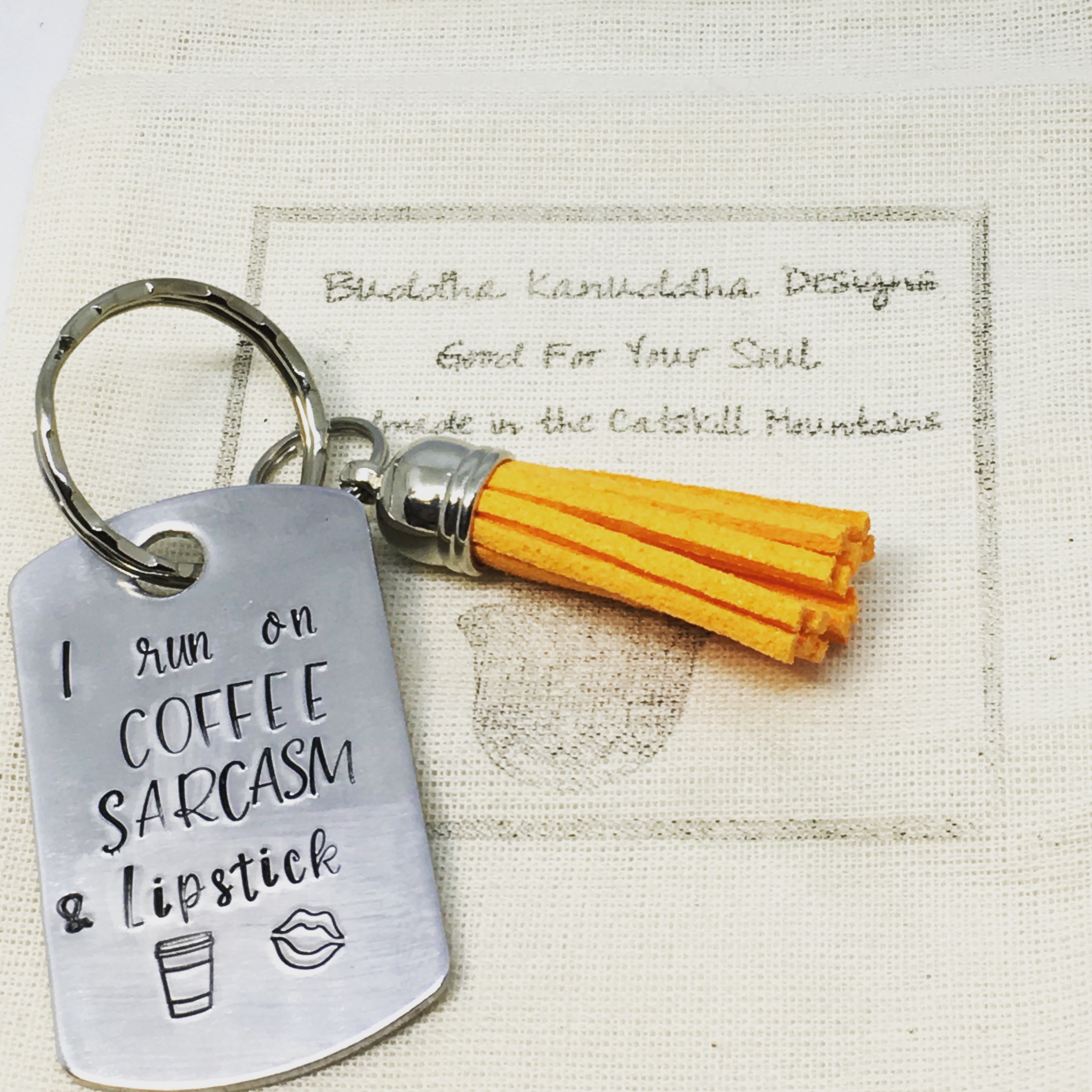 Coffee Sarcasm and Lipstick Hand Stamped Keyring