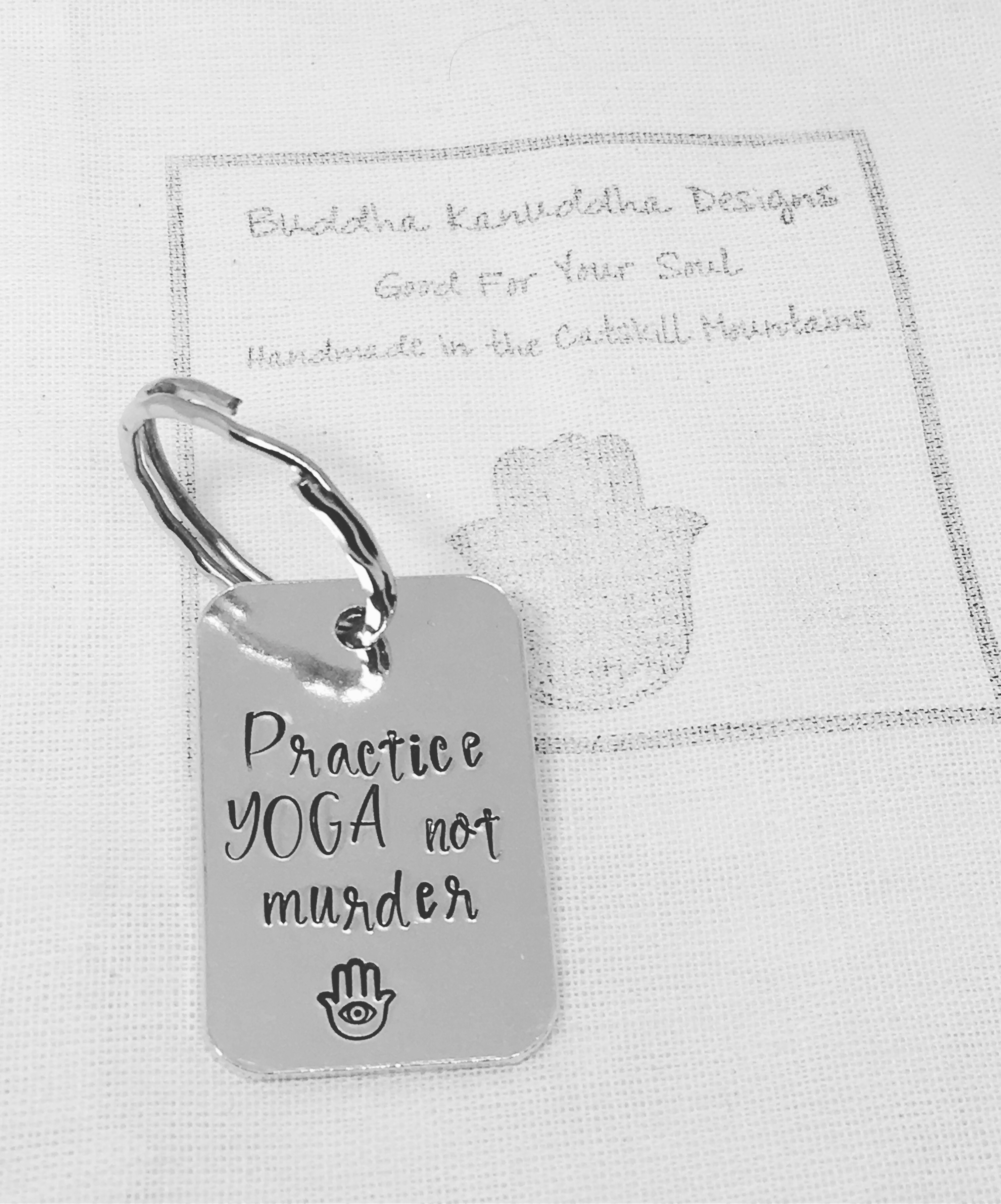 Practice Yoga Hand Stamped Keyring
