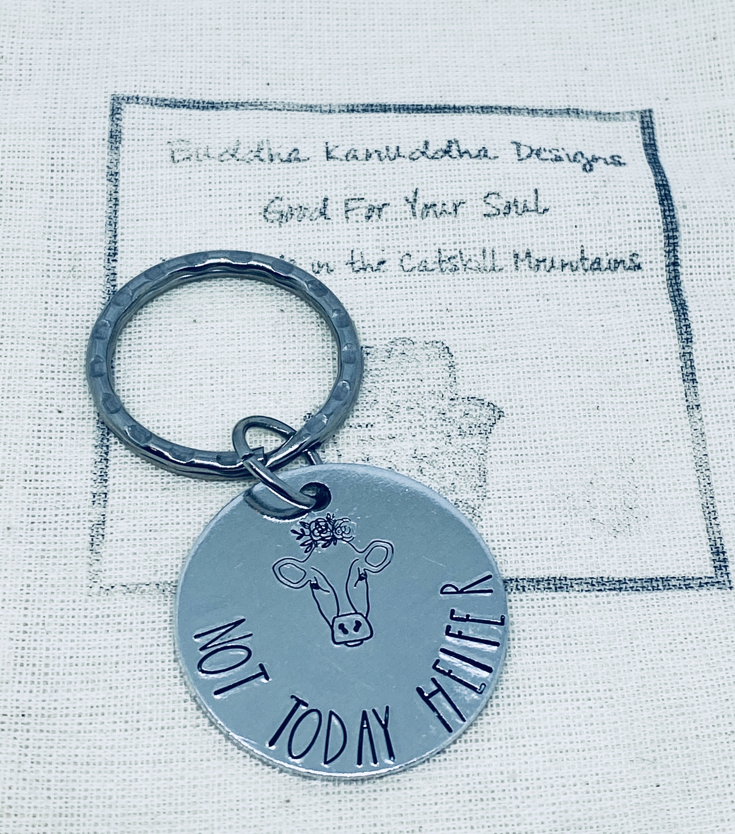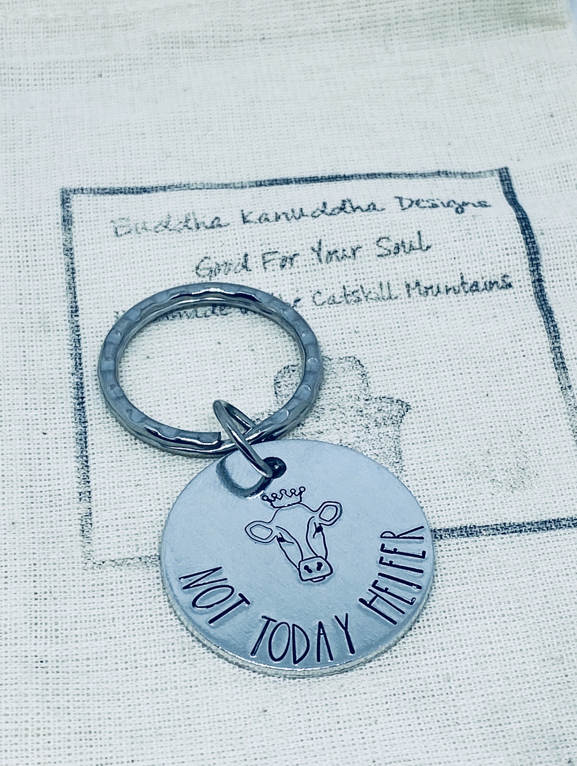 Not Today Heifer Hand Stamped Keyring