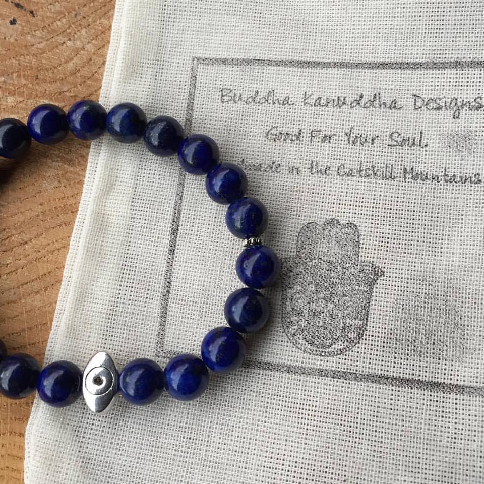 Beautiful handmade yoga bracelet with 8mm lapis lazuli beads and evil eye charm. One size. Healing Properties of Lapis lazuli: ♥ Inner truth ♥ Inner power ♥ Love ♥ Purification ♥ Intuition ♥ Positive magic ♥ Self-confidence ♥ Manifestation ♥