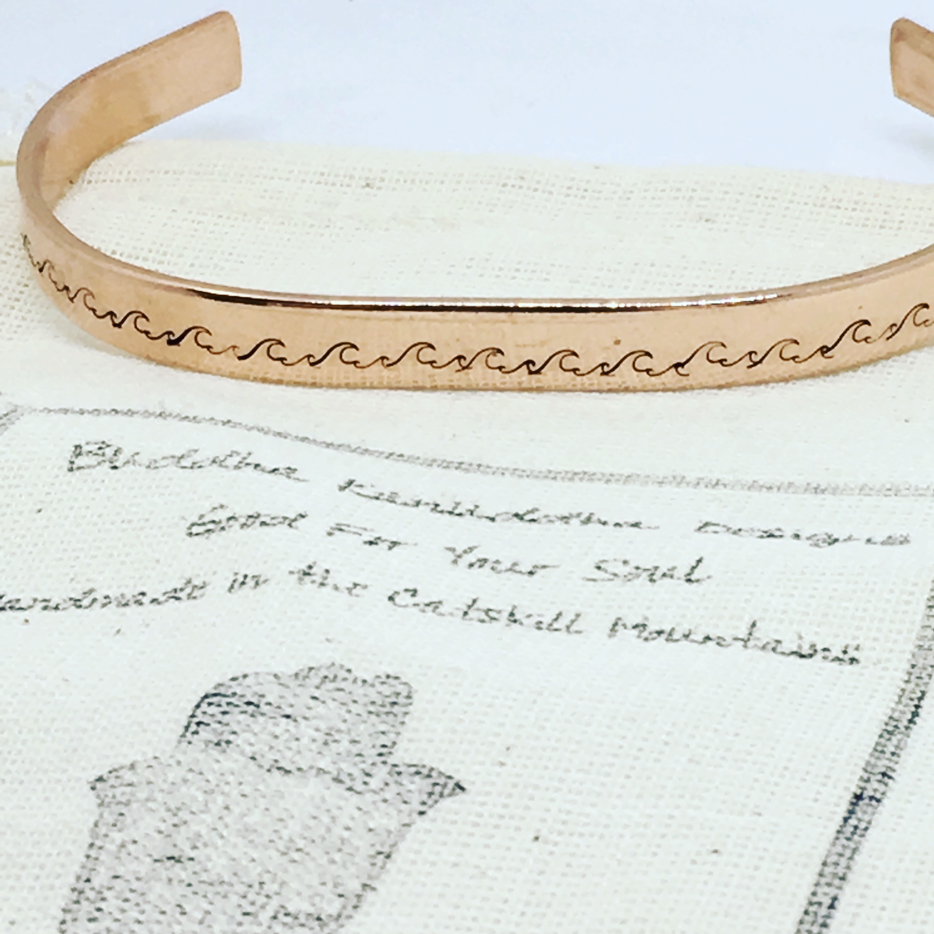 This was designed with my favorite place in the world in mind. Genuine coppper, hand forged and hand stamped bracelet. Each bracelet is hand stamped by me with love, so no two are exactly alike.