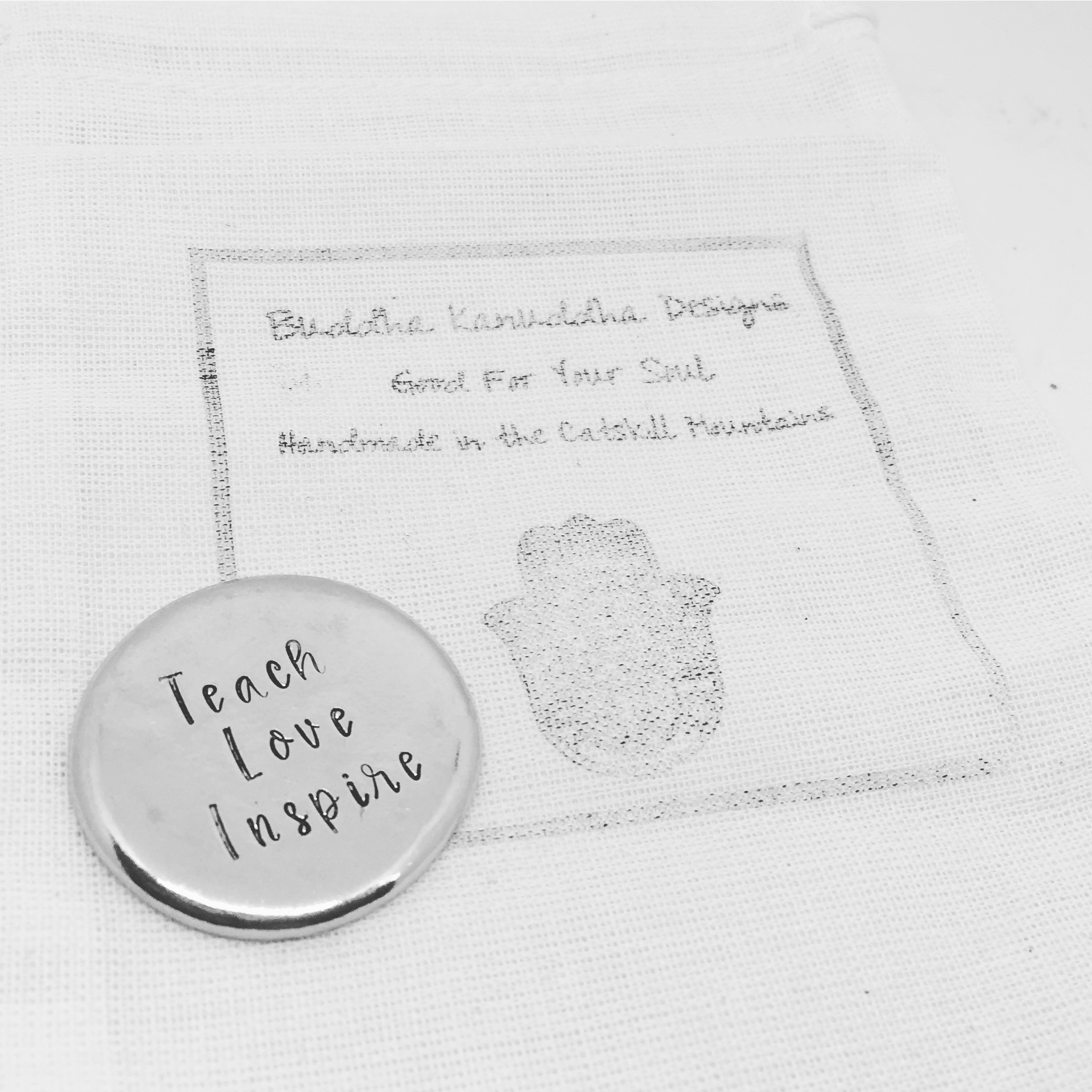 Teach Love Inspire Hand Stamped Pewter Pocket Stone