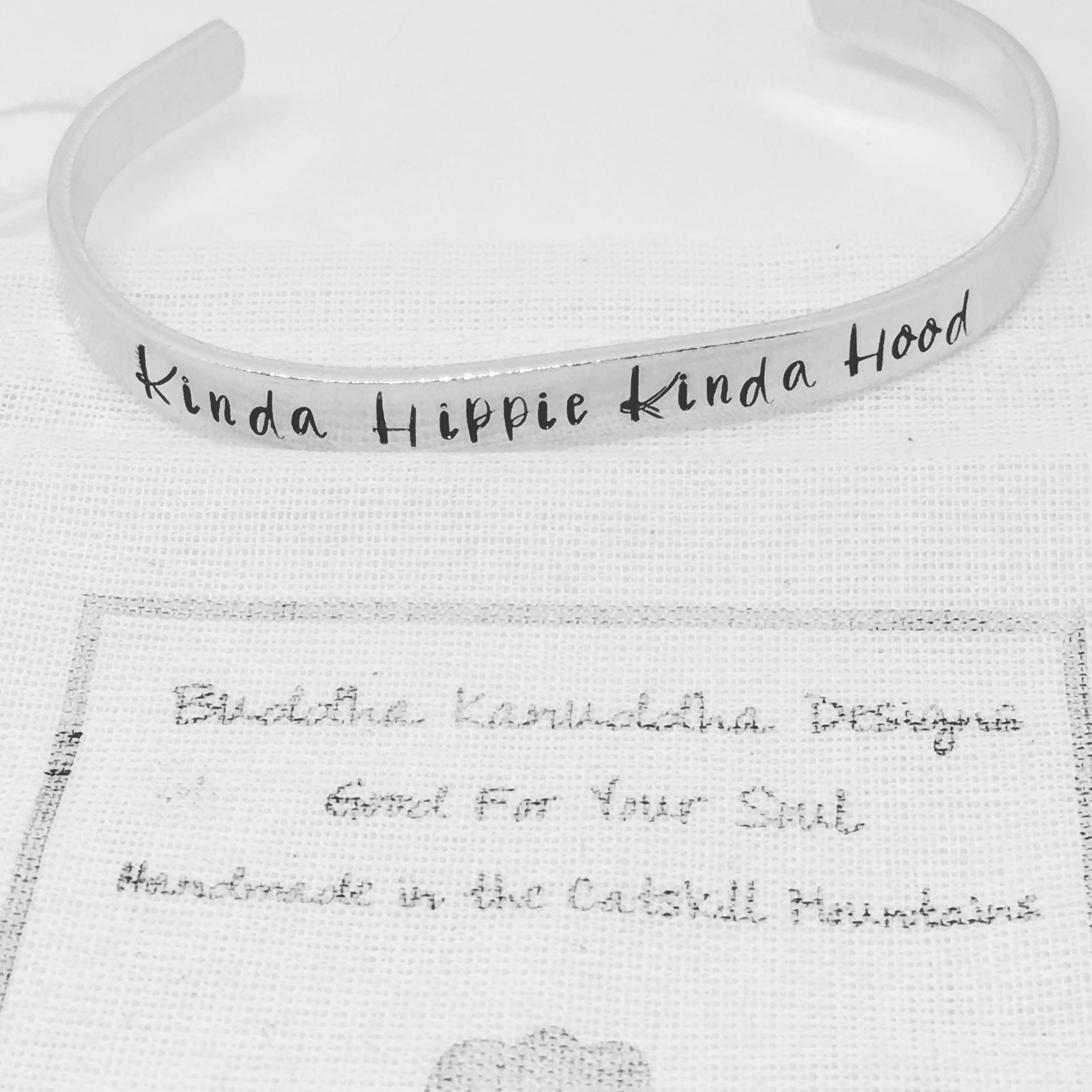 It describes a lot of us. Handmaid hand stamped bracelet on heavy 12 gauge aluminum food grade. Does not tarnish. Each bracelet is hand stamped by me with love. No two are alike which adds to the artisan effect.