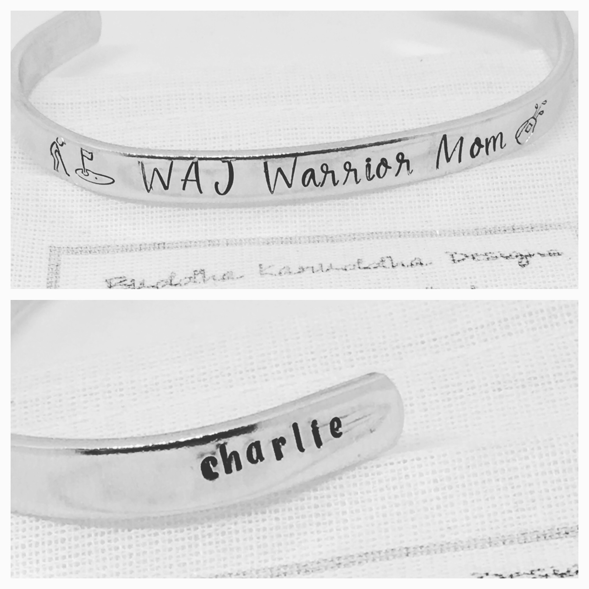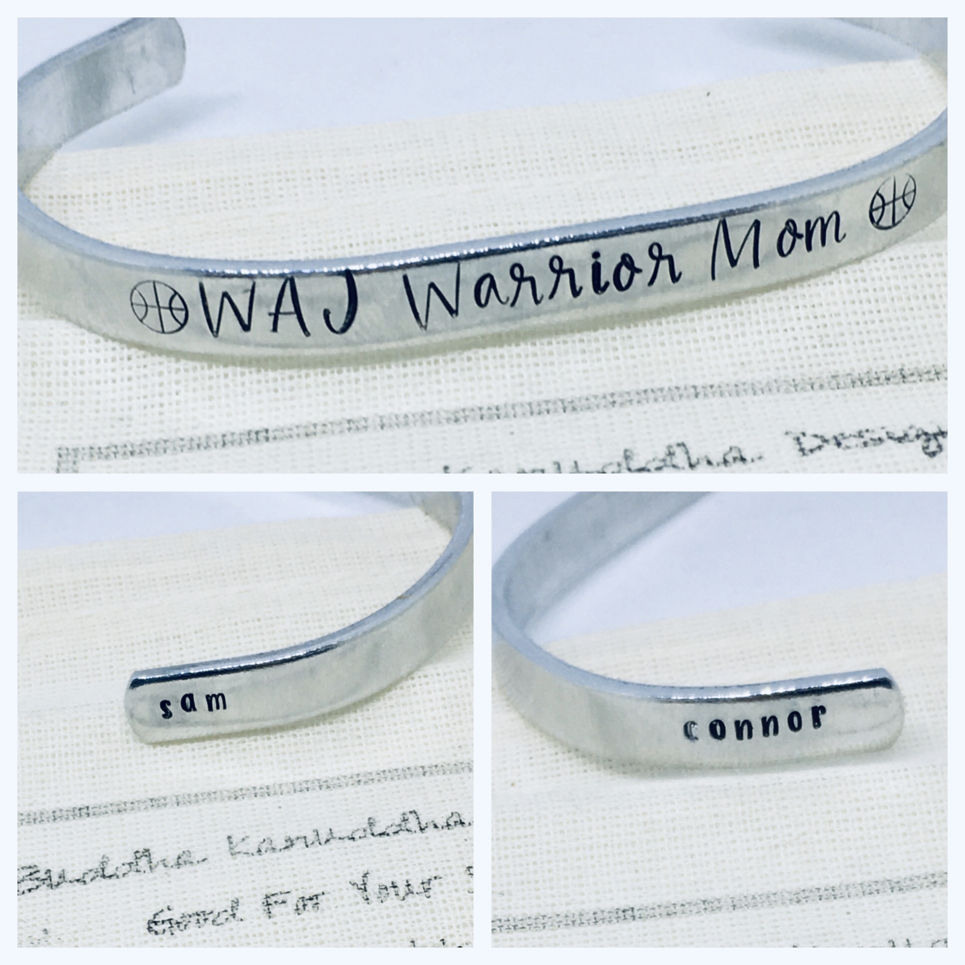 Show your Warrior Pride! Hand stamped bracelet. Now two are alike which adds to the artisan effect. Available in basketball or golf . More sports to come in future. Two names can fit on Bracelet, please specify in notes section.