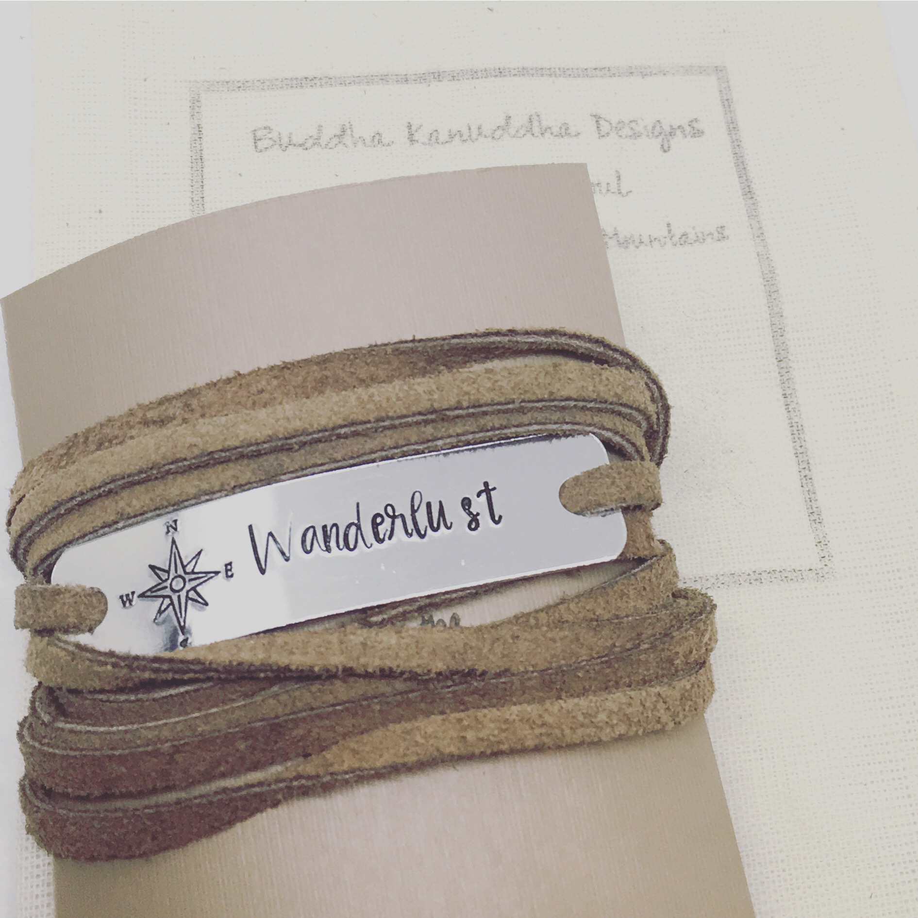 Gorgeous handmade hand stamped bracelet. Just wrap strap multiple times around your wrist and tie.