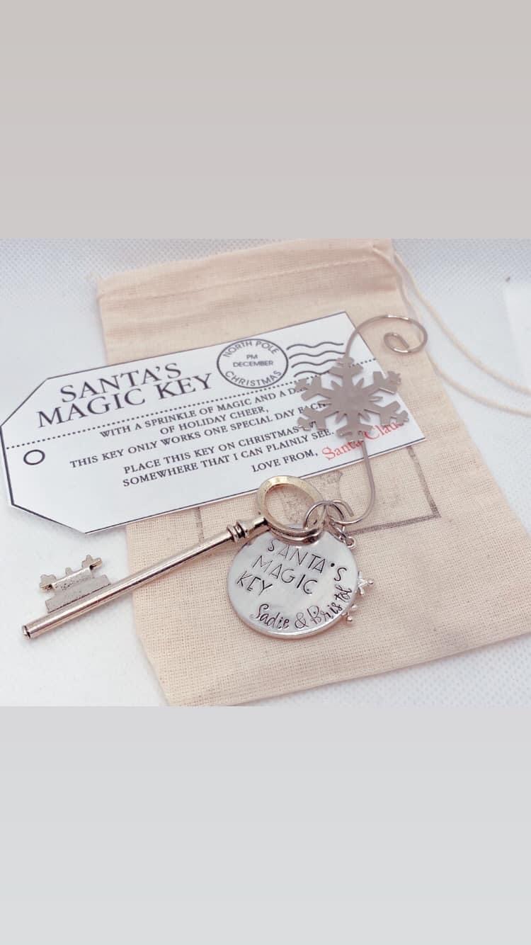 So how does Santa get in your house? With his magic key! This adorable Christmas ornament is ready to be personalized with your family name.